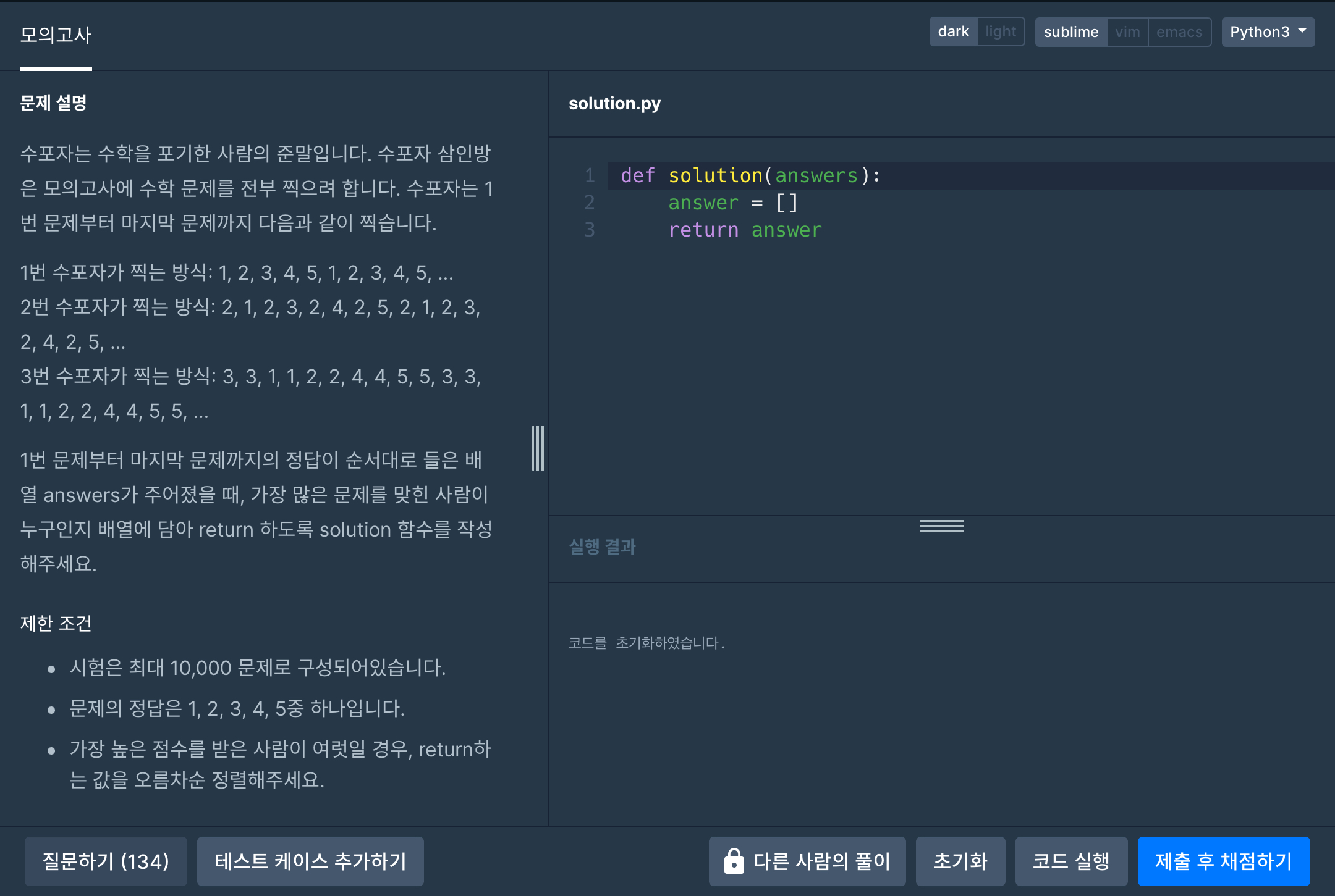 첫 번째 문제인 “모의고사” 에 들어가 보겠습니다.